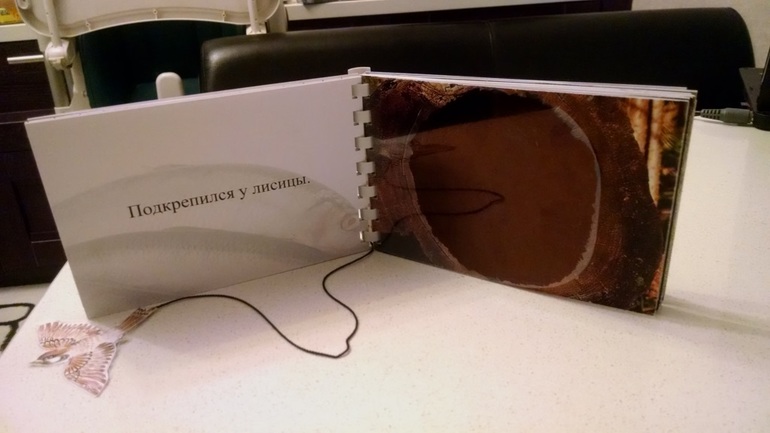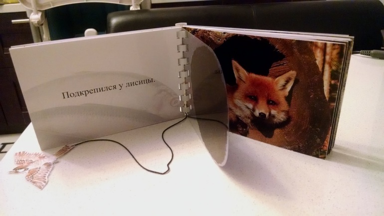 Книгу я делала на фотобумаге 10х15. На разворотах справа - животное с тактильными вставками, а слева разместила текст, а также лакомство, которое может получить животное в зоопарке.Ну правда, кто даст медведю бочонок меда? А вот яблоки - я сама не раз видела ТВ репортажи, как медведям в "праздничные" делали "мороженое" - ведро яблок во льду. И лисице не будут мышей ловить. Поэтому при прочтении книги этот момент надо с ребенком обсудить.