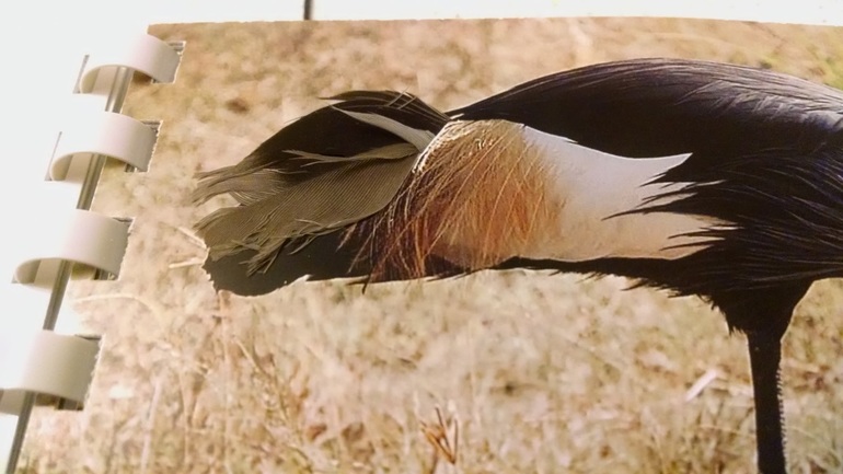В районе хвоста делаем маленький надрез и вставляем настоящее голубиное перо, главное - не забыть водой ополоснуть перед использованием. Закрепляем его скотчем с обратной стороны.
