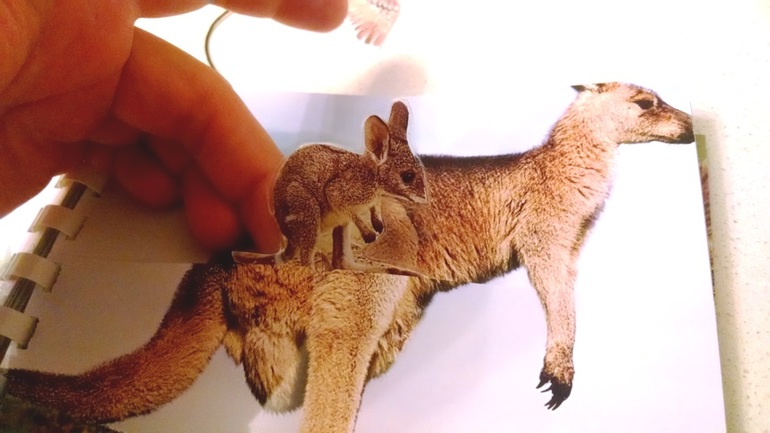 Надо заламинировать кенгуреныша обычным широким скотчем и в районе лапок оставить примерно 2-3 см скотча, так чтобы его можно было вытаскивать из кармана мамы-кенгуру. Жаль, я не догадалась заснять все в процессе. Делать гораздо проще, чем писать.