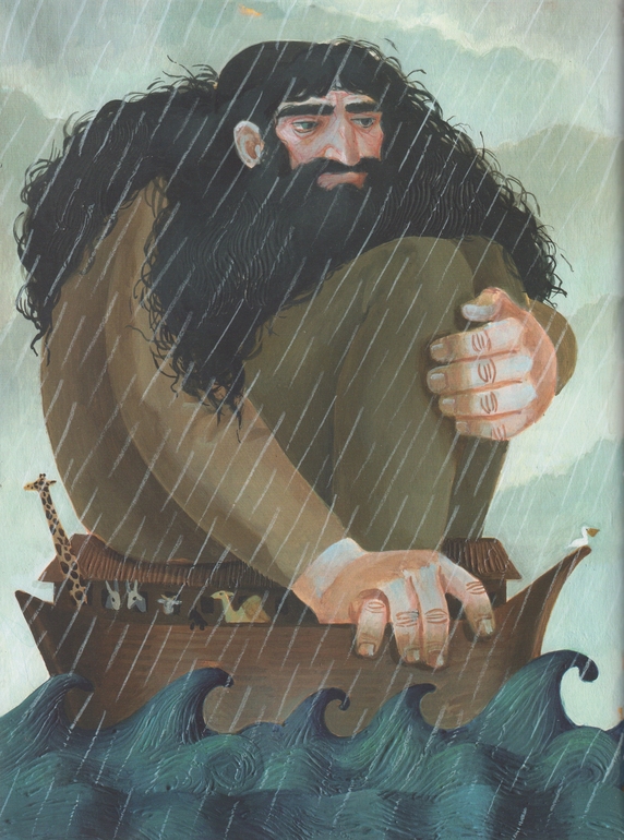 Великан Ог и ковчег. Давным-давно в мире жило множество великанов. Однако уцелел после потопа только один - Ог. Он пмог Ною собрать по всей земле животных в ковчег и Ной позволил Огу сесть наверху ковчега. И, пока ковчег плыл, с Огом делились пищей жирафы, черепахи, гусеницы; коровы, верблюды, козы отдавали ему молоко; птицы делились оперениец для того, чтобы Огу было мягче сидеть. Все звери были благодарны Огу за их спасение. Великан был счастлив! Он запел песню и пел её сорок дней и сорок ночей, а его друзья внизу танцевали.