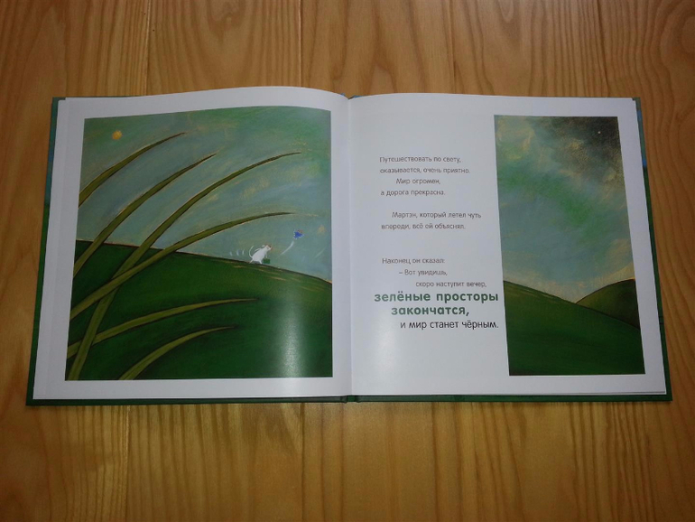 Здесь каждый разворот представляет малышу новый цвет в окружающем мире: зеленые поля, белые снега или желтые пески. Книга будет полезна, когда вы начнете изучать цвета с малышом, ведь она учит видеть цвет всей картины, а не детали. Вот пойдете потом осенью в парк и спросите ребенка: какого цвета наша прогулка?