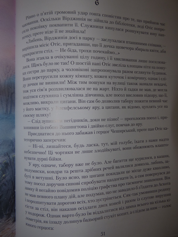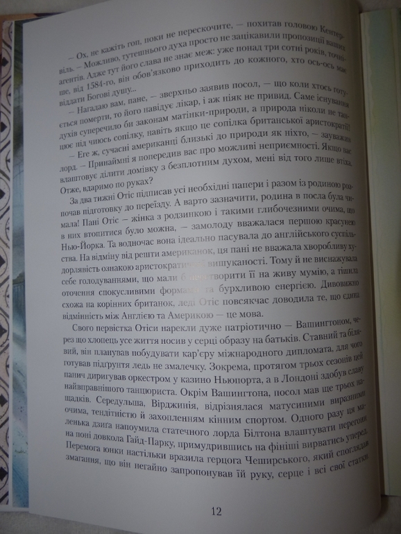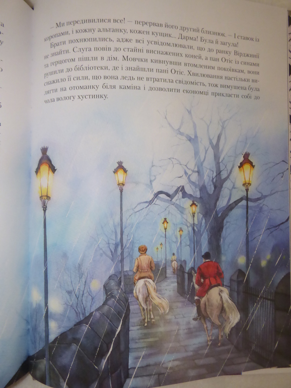 Американський посол містер Отіс купує в Англії замок, про який ходять легенди. Причому купує разом із меблями та… привидом. Здавалося б, тепер дух кривавого злочинця зможе досхочу познущатися з нових господарів… Та дзуськи: Отісів голими руками не візьмеш! Зрештою нещасний привид визнає поразку, і його самого можна просто пожаліти… Саме це й робить юна дочка посла Вірджинія. Оповідання знаменитого Оскара Вайльда навчає доброти, терпіння та співчуття - чого так бракує в сучасному житті. Читайте класичну прозу, милуйтеся прекрасними ілюстраціями і вірте: дива трапляються!