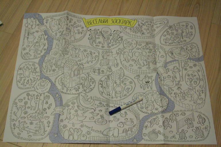 Веселый зоопарк - это большой плакат-раскраска, можно потом на стену повесить: