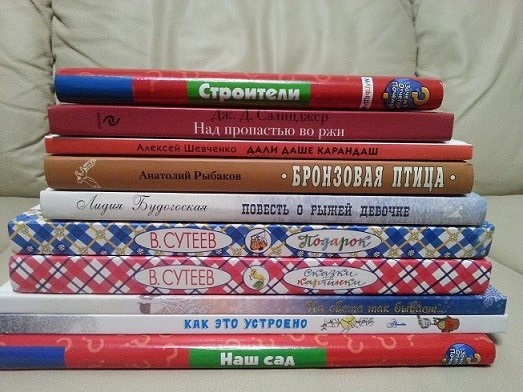 Книжицу с наклейками взяла зря - уже выросли из неё, надо что-то поинтереснее уже было брать. А Лиханова взяла бы всего и сразу - наконец-то издали, да так хорошо - но уж больно дорого, так что только потихоньку. Издание шикарное конечно: