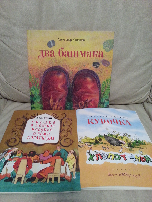 А вот Курочка и Два башмака очень даже любимы и читаемы. А какие красивущие, особенно Башмаки, не устаю любоваться. Спасибо Лене Мисаго, раньше эту книгу я не видела.