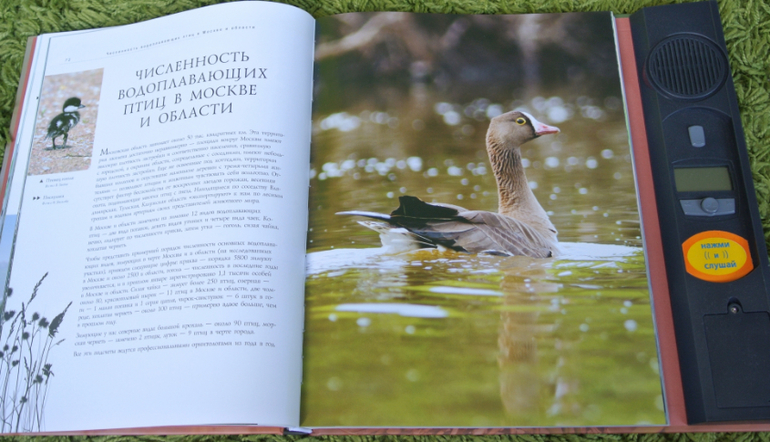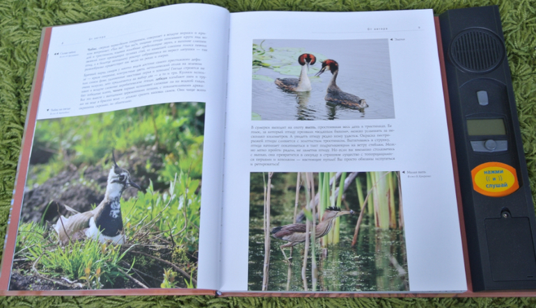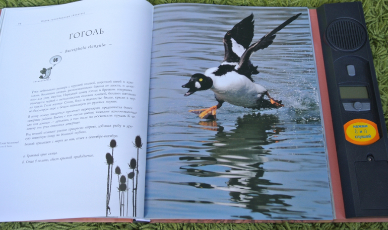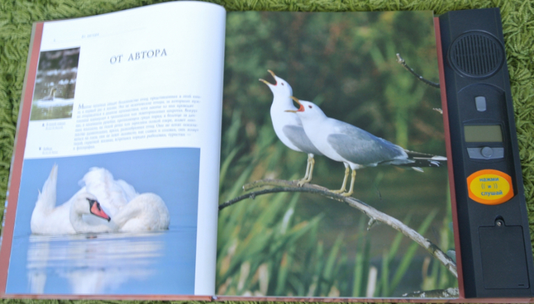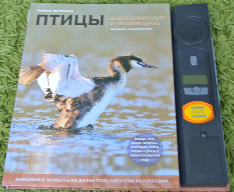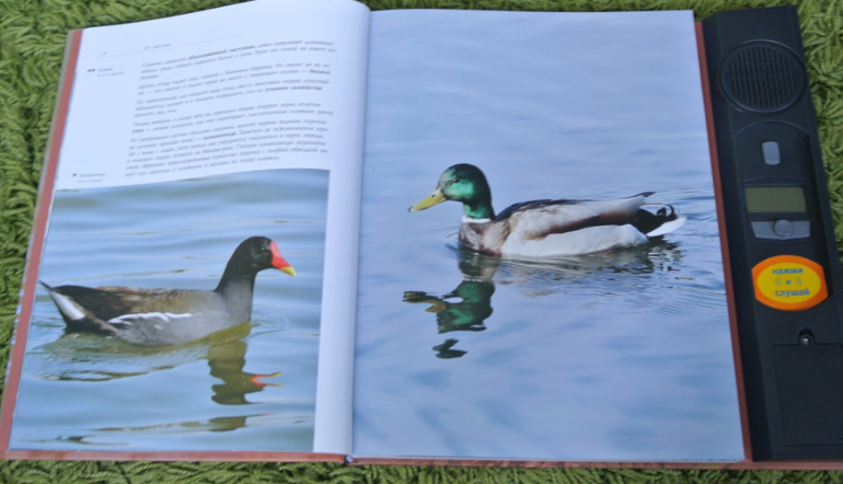 Все хочу показать эту книгу вместе с "Певчие птицы", которая на ББ не раз была показана девочками. Но все руки не доходят. Обе книги шикарны, живут у нас не один год. Очень хорошие фотографии, понятное описание и, конечно же, изюминка этих книг - звуковая, голоса птиц. Старший пират и по первой, и по второй книге не раз готовил доклады в школу. Информации достаточно. Не по три строчки сухого текста, как это практикуется в энциклопедиях. Описание птиц интересное, понятное уже старшему дошкольнику.