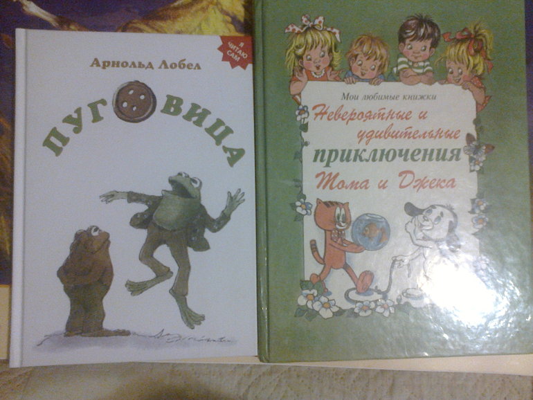 В нашем доме сначала появилась книга про кота Тома и пса Джека.Раньше я часто покупала грошовую букинистику для ознакомления с текстом..тексты мне и детям понравились,иллюстрации по мне слишком журнально-компьютерные,детям некритично.Затем я все-таки решилась на покупку одной книги из серий про другую дружную парочку -Квака и Жаба.Начали читать.Читаю и понимаю,что текст знаю,только персонажи раньше были другие..Где?Когда?пытаюсь лихорадочно вспомнить.Вуаля, да это же кот и пес, с ними происходят те же события,слово в слово..вот такая история.