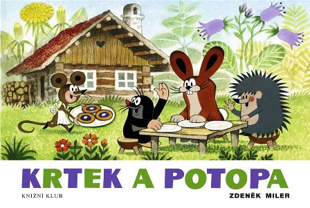 «Krtek a potopa». Эта книжка на чешском, но оказывается он очень понятный, к тому же и по картинкам опять-таки всё ясно))))) даже не пользовалась переводчиком, рассказываю своими словами))) К Мышке в гости пришли друзья, но тут начался сильный ливень и её домик затопило водой. На помощь пришли её друзья - Кротик, Заяц и Ежик, которые в конце истории помогли построить Мышке новый домик.