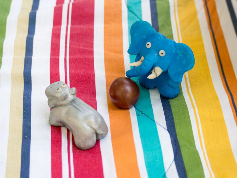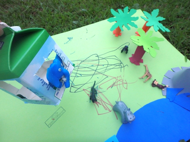 Какой отличный слон и бегемот, не скажешь, что слепленные самостоятельно! А юный художник-неподражаем!