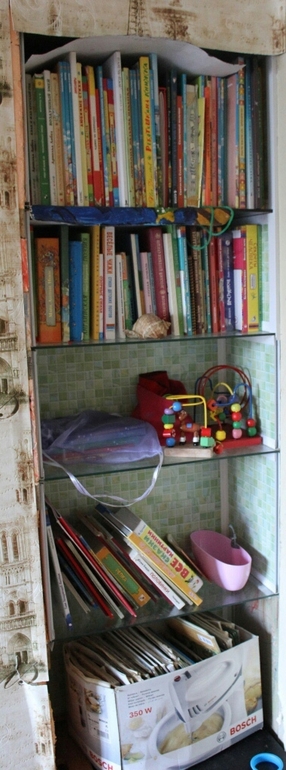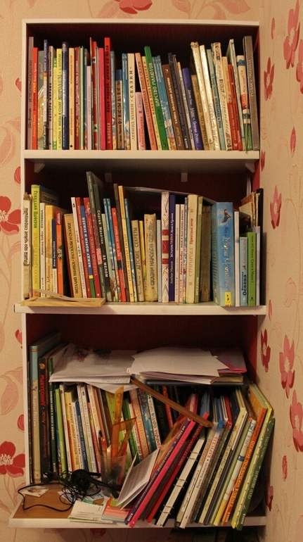 До определенного момента она была заполнена вся под завязку, но подросшая Ева участившимися актами вандализма вынудила меня освободить две нижние полки под ее нужды.