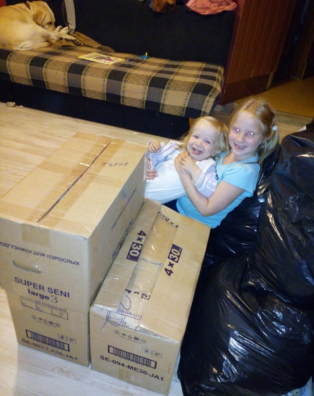 Для детей - новое развлечение. Переезд. Так все странно. Все интересно. Можно лазить по переставленной мебели, прятаться за коробками и прыгать на тюках. Ух!)))