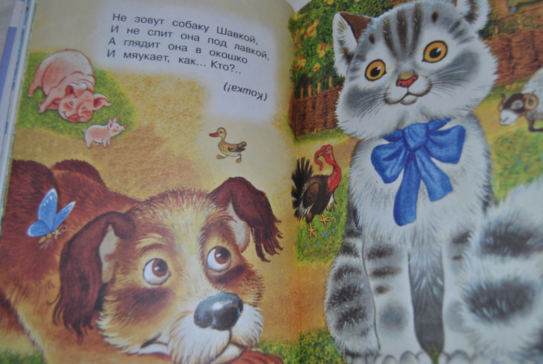Здесь есть и знаменитый щенок Трезор, и девочка Юля, которая плохо кушала, и мальчик Андрюшка, выбирающий игрушку в магазине, и веселые котята Раз, Два, Три, Четыре, Пять, и Анна Ванна -бригадир и многое-многое другое. Покажу некоторые странички