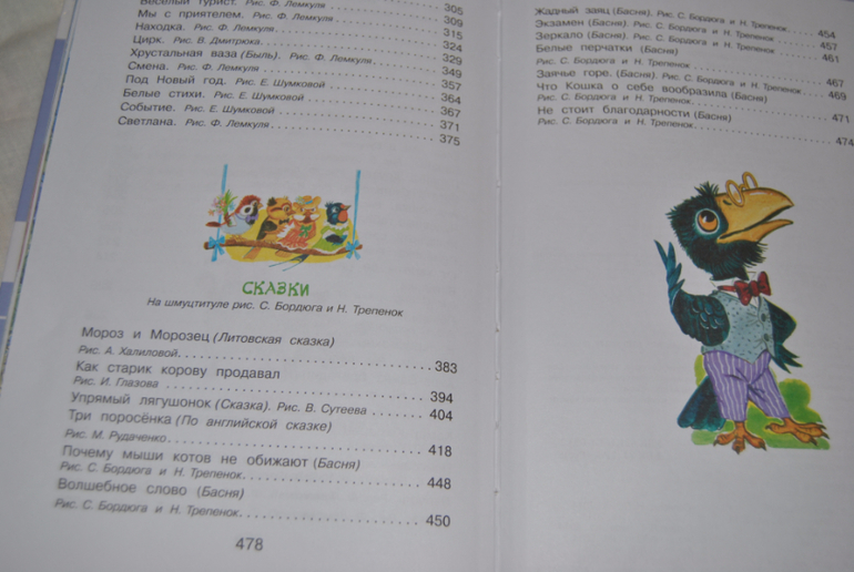 Своей дочери долго искала книгу со стихами и сказками С. Михалкова, то одно не нравилось, то другое, наконец-то я нашла такую книгу. Она устроила меня всем: иллюстрации разных художников ( Ф. Лемкуль, Н.Трепенюк, А. Савченко, С. Бордюг, В. Сутеев), хорошая подборка стихотворений и сказок, удобный формат книги)