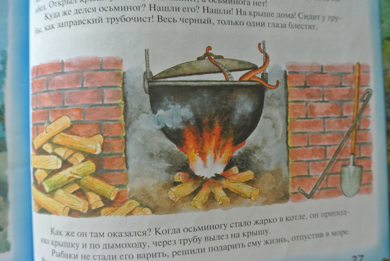 Для гурманов - можно приготовить суп из осьминога, только стоит быть повнимательнее. Он и убежать может, как это произошло в "Приключениях осьминожки" Г.Целищева.