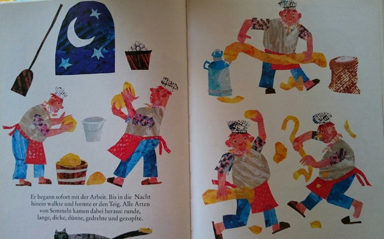 Как был постряпан первый Брецель? Это точно знает наш любимый Eric Carle "Theobald der brezelbäcker". Кто еще так виртуозно может управляться с тестом??