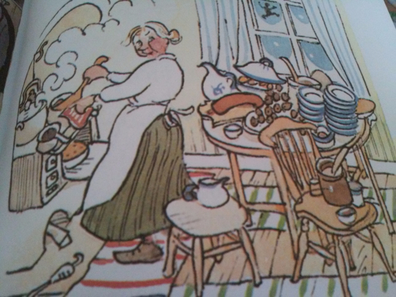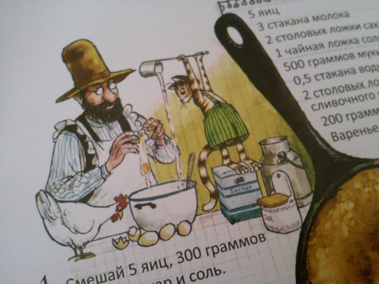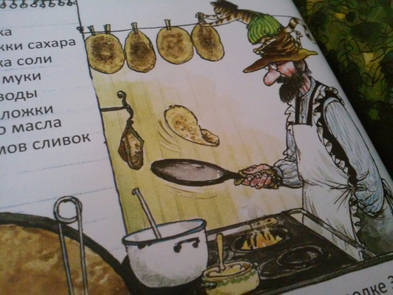 Когда я спросила Раду, кто из книжных героев умеет вкусно готовить, ну конечно она сразу вспомнила про Петсона и Финдуса, и вот этому прямое подтверждение. Выкладываю не всё что нашла Рада, старалась! А нарисовал, конечно Свен Нурдквист.