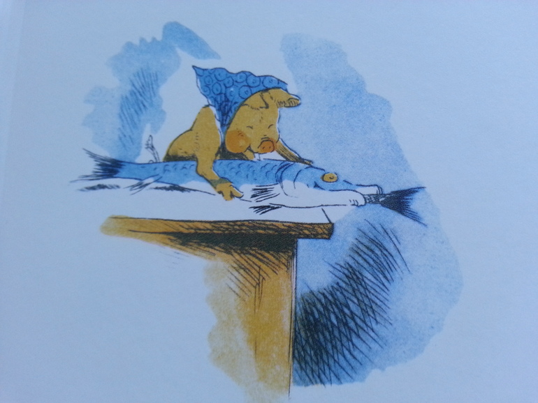 Это женщин из книги "Приключения Степы и Клепы". Там еще и рыба непростая - во рту еще рыбка, а у той лягушка, а у нее комар, который на всех напал ))).