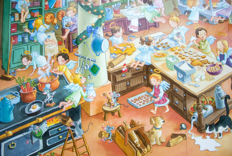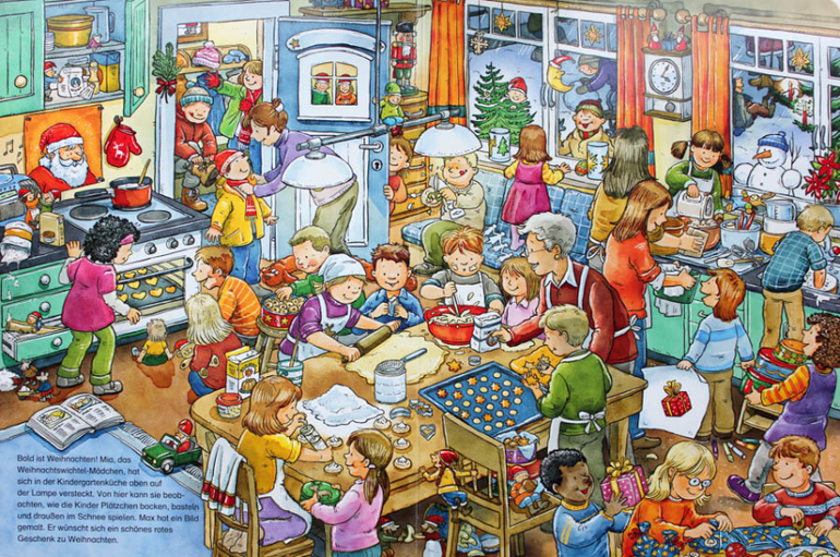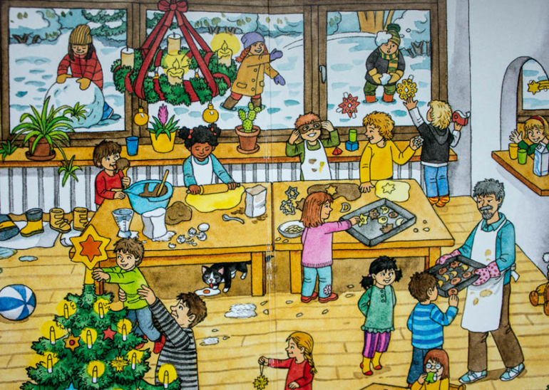 И снова печенье, вообще практически в каждом новогоднем виммельбухе встретишь кого-то выпекающего печенье