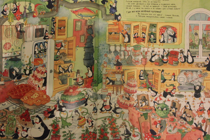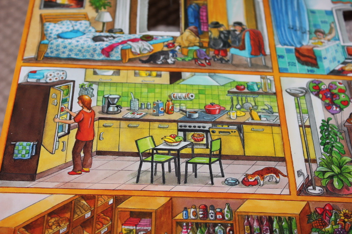 Смогла сесть за вторую часть только после того,как уложила ребятенка спать. Конечно же,мы с ним, вооружившись стопочкой виммелей дружно искали кто где готовит.