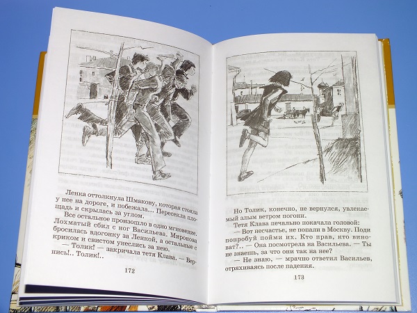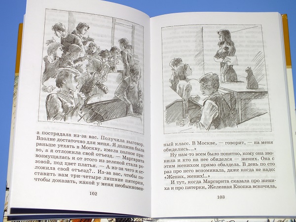 С "Чучелом" был трудный выбор. Цветные иллюстрации сначала казались предпочтительнее. Но стиль как-то отталкивал. В своё время я перечитывала эту повесть (в средней школе) много-много раз и отсутствие иллюстраций на моё восприятие никак не влияло. Поэтому решила взять из проверенной серии эту книгу. Но когда дошло дело до оформления заказа, я увидела, что книжечка то не такая скромная. Обилие иллюстраций любимого художника Владимира Гальдяева сразили меня наповал. (Я тут как-то говорила, что книг с его иллюстрациями у нас совсем немного, теперь лучше буду помалкивать