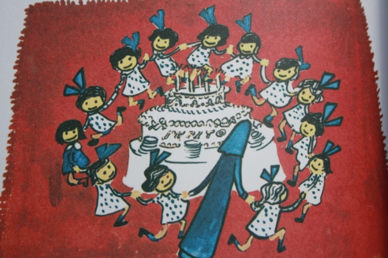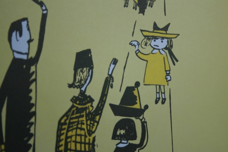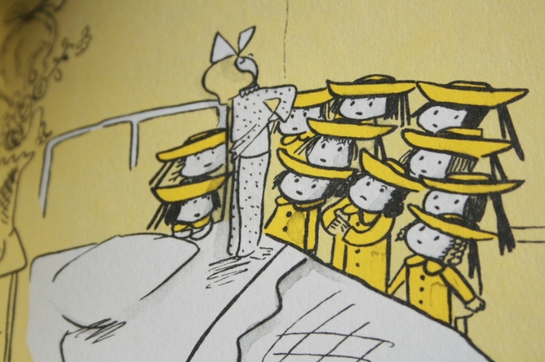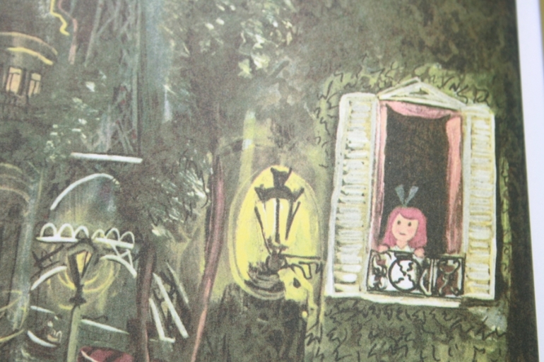 Да что скрывать - и мне не просто одновременно пытаться и стихотворение прочесть, и картинки успеть рассмотреть. Предложение разбегается на несколько страниц, темп меняется, не всегда понятен переход от одной ситуации к другой, если не следить за визуальным рядом. Но это не мешает мне любить и книги, и саму Мадлен :)