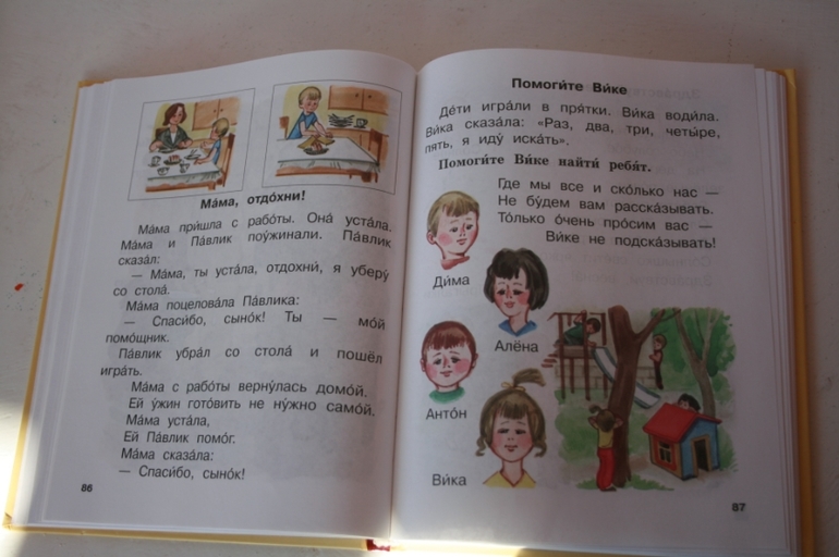 На следующий день после первого знакомства с книгой Надя гордо рассказывала, как в школе на вопрос "Какие слова вы знаете на белорусском языке?" она сказала "сяброука" (подруга). Дружба - это наше всё... Нет чтоб запомнить как здороваются...