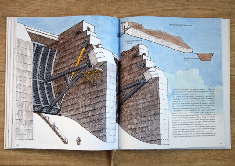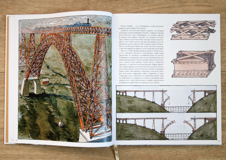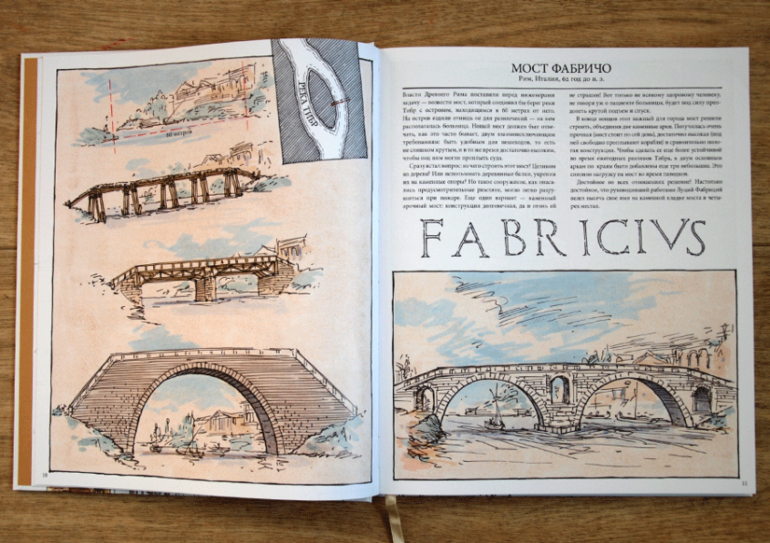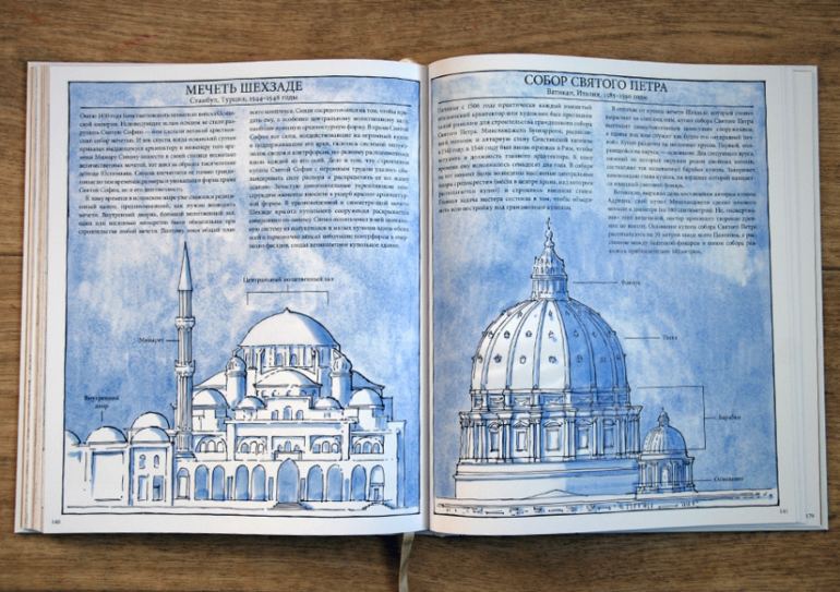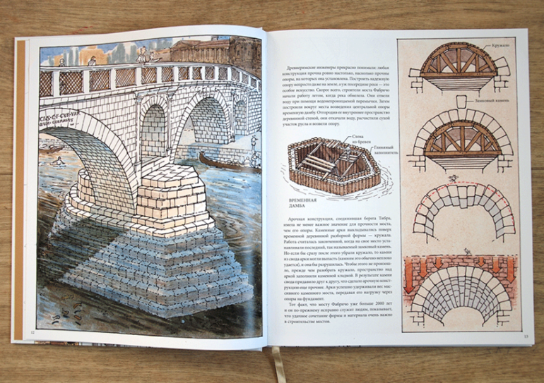 А вот от содержания книги я очень далека. В нем очень много технических подробностей, описаний, что для меня было ужасно скучно и непонятно. Больше всего мне нравилась первая часть о каждом строении, где рассказывалось, какие задачи и с какой целью были поставлены перед архитекторами и инженерами. А вторая часть, в которой описывалось, как это было реализовано, навевала на меня скуку. И это совсем не детская книга, а лет от 12 наверно минимум.