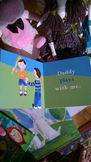 У нас такие дареные, http://www.labirint.ru/books/214151/ очень удобно- смысл ведь понятен, задания есть сзади. Еще маму видела на площадке, у нее была игра в догонялки, то есть у нее с сыном договор, в его любимую игру мама с ним играет, но правила строгие и вещает только на английском и он если хочет сказать, то гоу и стоп, если он убегает за пределы горки, просит его лезть обратно по- английски. Вот это было круто, хочешь играть, учи язык :-)