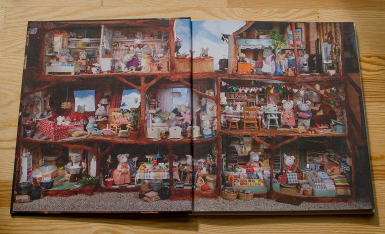 Первую книгу я купила, когда сыну не было еще и полутора лет. Не удержалась! Уж очень мне понравились эти рукотворные иллюстрации. В течение нескольких лет Карина Схапман строила и населяла миниатюрный мышкин дом, каждая деталь интерьера или предмет быта в нем - это настоящее произведение искусства!