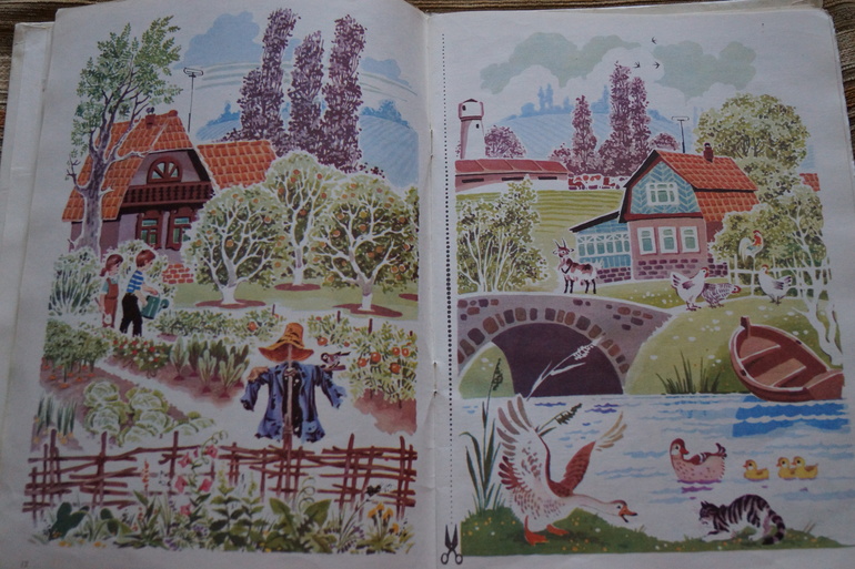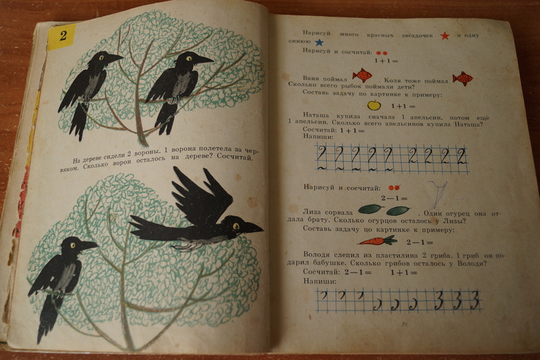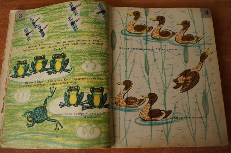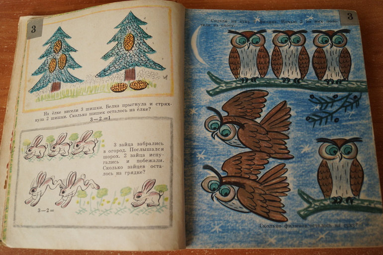 Еще у нас есть отличная старая книга "Учись считать". Любим посмотреть в ней картинки. Иногда считаем что-нибудь, показываем пальчиком "один, два, три". Мне с детства очень нравятся там рисунки. Даже помню, как я их разглядывала. Книга старенькая, 1962 года.