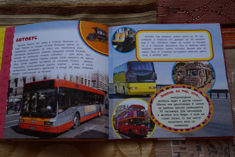 Зато "Траспорт" от "Росмэна", купленный за копейки местном магазине попал в любимчики. Макс очень любит эту книгу. Может долго и внимательно разглядывать фотографии, всматриваться, что-то бормотать про себя.