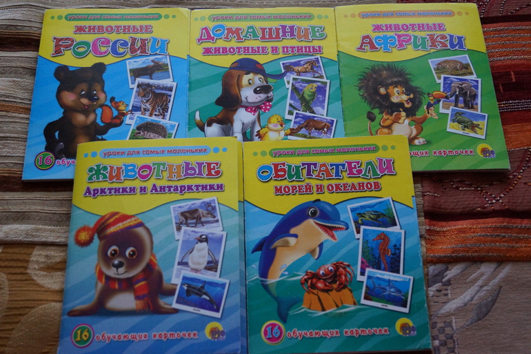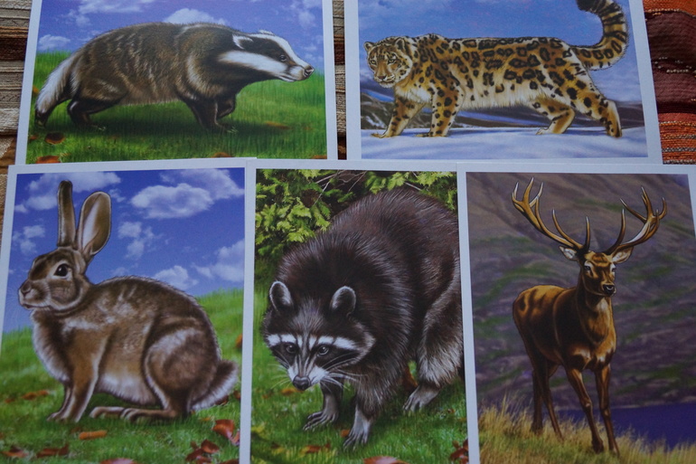 В продолжении темы животных хочу показать наши карточки. Они от "Проф-пресса", но не пугайтесь, карточки вполне достойные. Да, изображения компьютерные, но реалистичные. Карточки размером в половину листа А4. Страшненькие обложки. Но сами карточки мне нравятся.