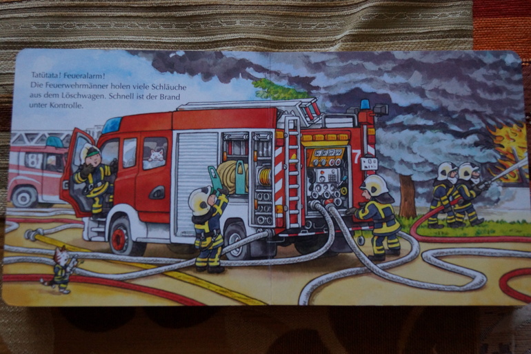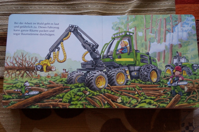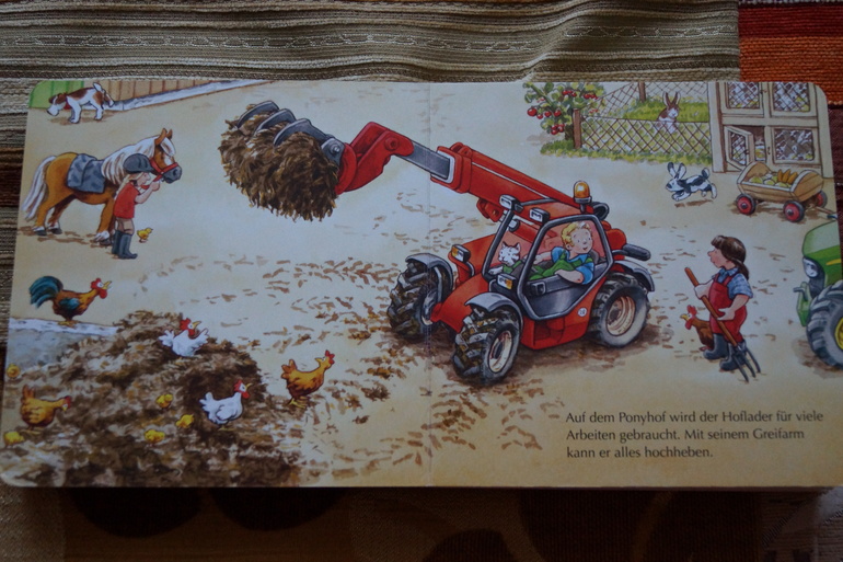 Немецкая картонка про спецтехнику просто прелесть, появилась у нас благодаря одной ббешечке. Лиза, спасибо еще раз - мы очень любим и «Лучшие истории Фруктовой фермы», и эту книгу.