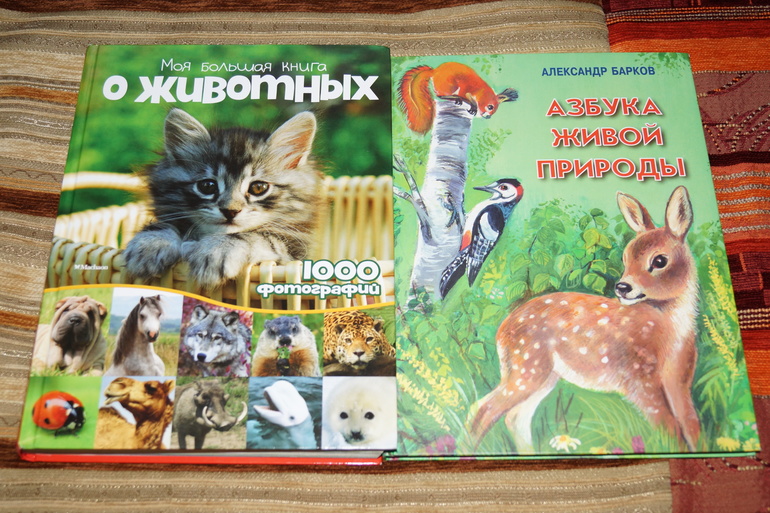 Хочу обратить внимание на "Азбуку живой природы" Александра Баркова. Отличная недорогая книга с очень хорошими реалистичными иллюстрациями Васильевой Татьяны. Книга до сих пор есть в лабиринте и стоит недорого. Переплет, плотные листы, да и сами рассказы-зарисовки Александра Баркова мне очень нравятся. А Максим с удовольствием разглядывает картинки.