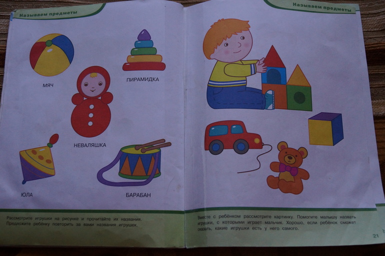 Очень хорошие пособия для самых малышей - от 0 до 2 лет - «Начинаем говорить» и «Начинаем считать». Четкие большие картинки. Можно проговаривать цвета, размеры, названия животных, действия и т.д. Для нас это были в свое время настольные книги.