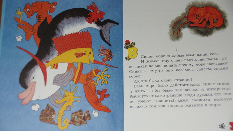 "В синем море жил маленький Рак. И жилось ему очень плохо, так плохо, что он никак не мог понять, почему море называют Синим - ему-то оно казалось совсем, совсем серым..." Но в конце повествования окружающий мир для Отшельникам меняется, в нем появляются краски, веселье, доброта и дружба.