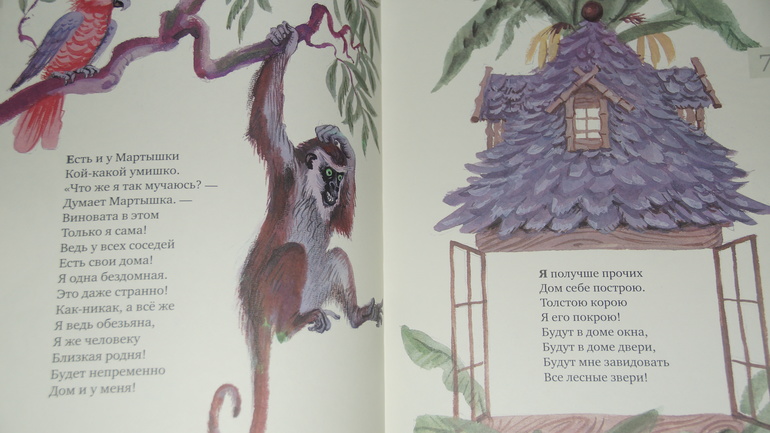 История в стихах про мартышку, которая решила построить себе дом, чтобы больше не мерзнуть по ночам под открытым небом, не мокнуть под дождем. Но мечты об уюте так и остались мечтами. Почему? Ответ - в книге)). Это целый рассказ в стихах. Очень смешной и ироничный. Когда мы читали первый раз, посмеялись от души.