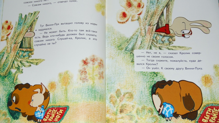 Эту книжку мы читали, когда Ане не было двух лет. Сейчас у моей почти-трехлетки этот Винни-Пух продолжает быть любимцем, хотя я подумываю о покупке полной версии книги А. Милна. А в этом "лайт"-варианте представлены три истории, легшие в основу трех серий мультипликационного фильма про медвежонка и его друзей: "Винни-Пух" 1969 года выпуска, "Винни-Пух идет в гости", созданного спустя два года, "Винни-Пух и день забот", вышедшего на экраны еще через год. Даже не верится, что мультяшный Винни старше многих из нас! А популярность его с годами не меркнет)).