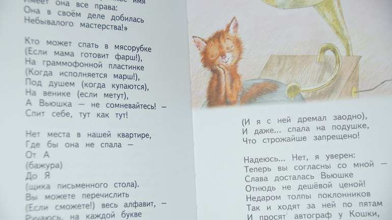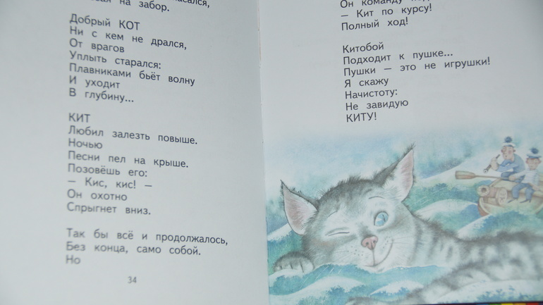 Издатели не обманули, когда пообещали на обложке: "лучшие стихи". Здесь любимые с детства: "Звонкий день", "Кошка Вьюшка", "Кискино горе", конечно, "Кит и Кот" и многие, многие другие. Теперь о том, почему я бы не обратила на нее внимания. Из-за оформления. Художник Надежда Богуславская - не самый мой любимый автор. Правда, местами ее работы отдаленно напоминают стиль Евгения Антоненкова. Собственно, это наблюдение и примирило меня с ними.