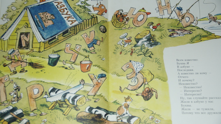 "Буква Я" особенно придется по душе тем, кто начинает изучать алфавит. Если вкратце, то история эта о том, как взбунтовалась буква Я и попробовала доказать собственную значимость, но в итоге осознала тщетность попыток и согласилась встать "даже сзади буквы Ю".
