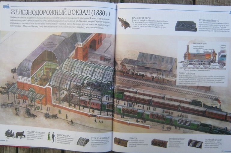 Книга получилась очень многофункциональная: это и историческая энциклопедия, и энциклопедия архитектуры и технологии, это находилка, это и просто книга для рассматривания и развития речи. Любой ребенок просто завалит вас вопросами, что изображено на картинках. Более того, можно пофантазировать и придумать целые истории, только разглядывая эти застывшие кадры истории.
