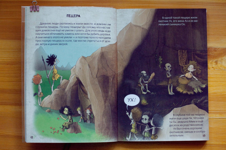 Первобытные люди - книга построена на истории одного племени. Племя, вождь в котором Ух. Затрагиваются в общем многие темы: и приручение животные, и овладение огнем, и жизнь племени, и религия с наскальным искусством. В принципе книга интересна и увлекательна. Помимо истории в ней немало заданий по теме. Когда читали первый раз - все их выполняли, сейчас же я их опускала.