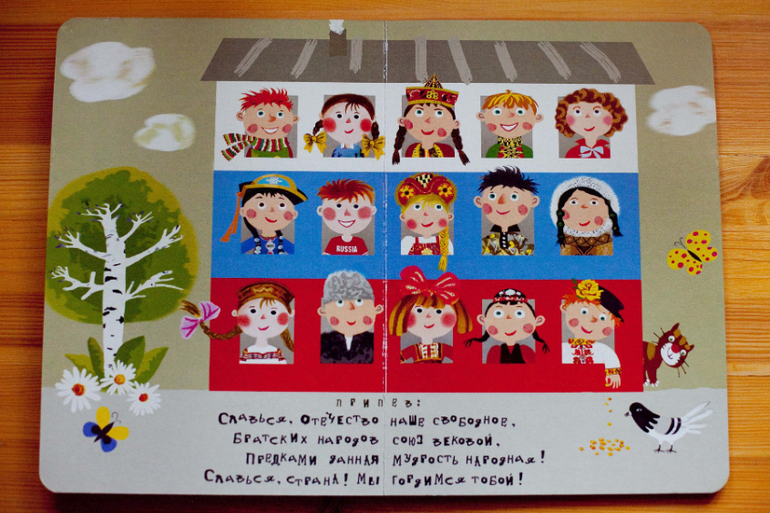 После того как книга появилась, сын полистал и отложил. Да и я забыла как то. А потом начался сад, и вечные распросы: что делали, что пели, что ели... И выясняется что на муз. занятиях дети готовятся к мероприятию и изучают Гимн России. Тут же выясняется что сын совершенно не знает слов и иногда вставляет окончания... Эту оплошность и недоразумение мы исправили за пару вечеров)))) Теперь сын постоянно напевает припев гимна, и сообщил что поет гимн он уже лучше самой воспитательницы)))))