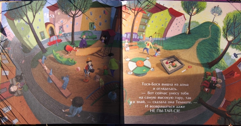 Но на самом деле, голова ваша где-то слишком высоко в облаках, ребенку порой не дотянуться. А на уровне его - детского взора только ваши ноги. А тем временем у него на этой площадке помимо ваших ног еще целый мир, полный чудес. И Лина, автор, она так и смотрит на этот мир, на одном уровне с ребенком.