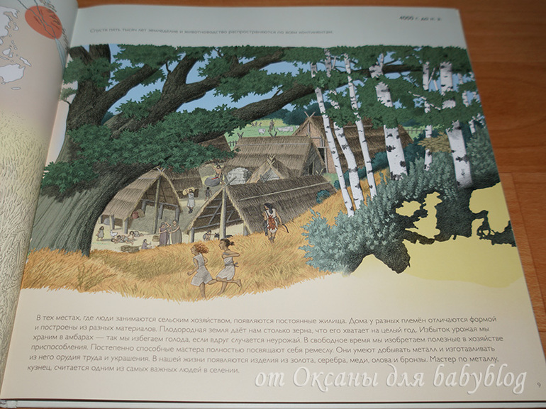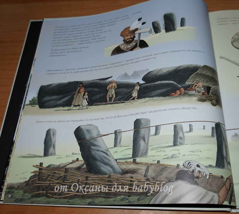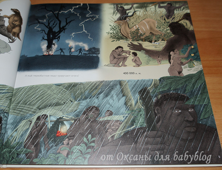 Теперь рекомендации по возрасту. Издательство рекомендует книгу детям от 6-ти лет. Мне кажется, это немного рановато. Для просто развивающего чтения язык чуть суховат и чуть сложноват для этого возраста. Идеально будет, на мой взгляд, лет с 8-9. Хотя, если ваш ребенок лет 5-6 подошел к вам с вопросами о том, как же жили люди раньше, как все менялось, какими были самые первые люди на Земле - знайте, что книга с удачно подобранным материалом есть! И она перед вами.