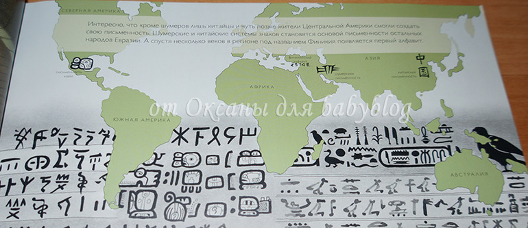Кратчайший рассказ о появлении письменности в разных регионах. Зато с привязкой к карте и примерами написания символов!