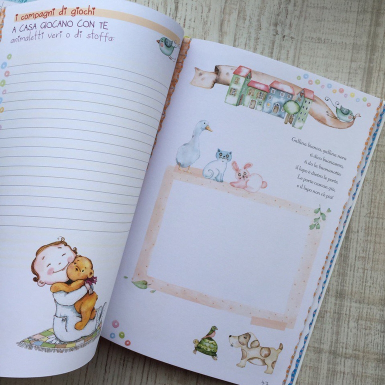 Чем дальше в возраст - тем более интересными становятся записи: дневник предлагает вспомнить и описать первый визит на море с малышом, первый каприз, первые слова (и даже полуслова!).
