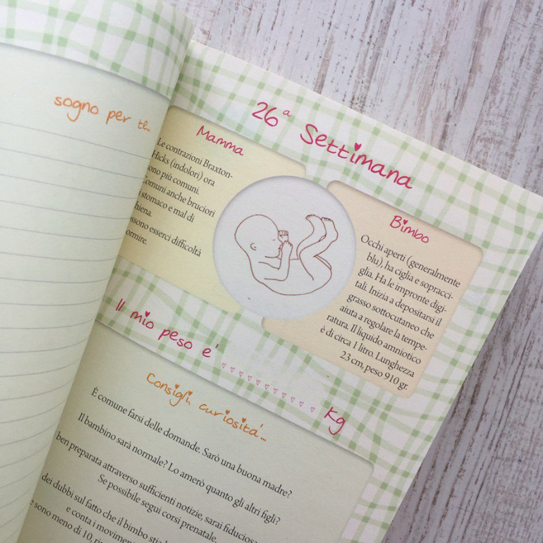 Книга играет роль дневничка, в котором мама может отслеживать свое физическое и психологическое состояние неделя за неделей (в дневник необходимо записывать свой вес, а на специальной страничке и свое самочувствие, новые ощущения, сопровождающие именно эту неделю беременности).