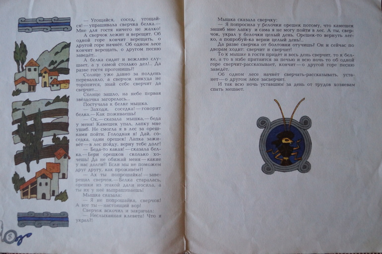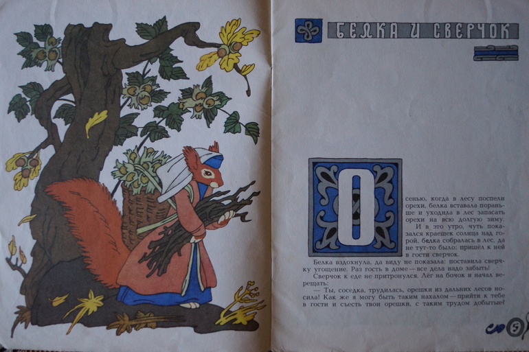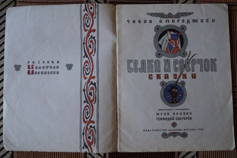 букинистикаНедавно ездили в гости к родителям. В очередной раз привезла стопочку своих детских книг. Сижу, листаю, подклеиваю странички, радуюсь, когда нахожу любимую книгу. Хочу показать сборник авторских сказок Амирэджиби Чабуа "Белка и сверчок" с иллюстрациями Булатова и Васильева. В детстве мне очень нравилась эта белка с обложки, она представлялась мне этакой красавицей-принцессой. Меня завораживал глубокий синий цвет обложки и наряды белочки-грузинки.