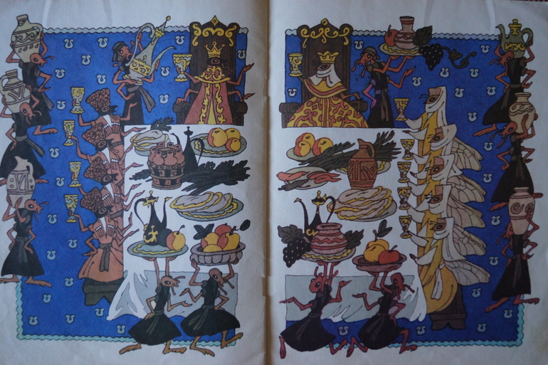 Иллюстрации Булатова и Васильева бесподобны. Люди, звери, насекомые в национальных костюмах великолепны. Какая старушка-мышь. Какой взгляд у старушки из сказки про злого человека. Какие гордые муравьи и очаровательные красавицы-пчелы. Красота!